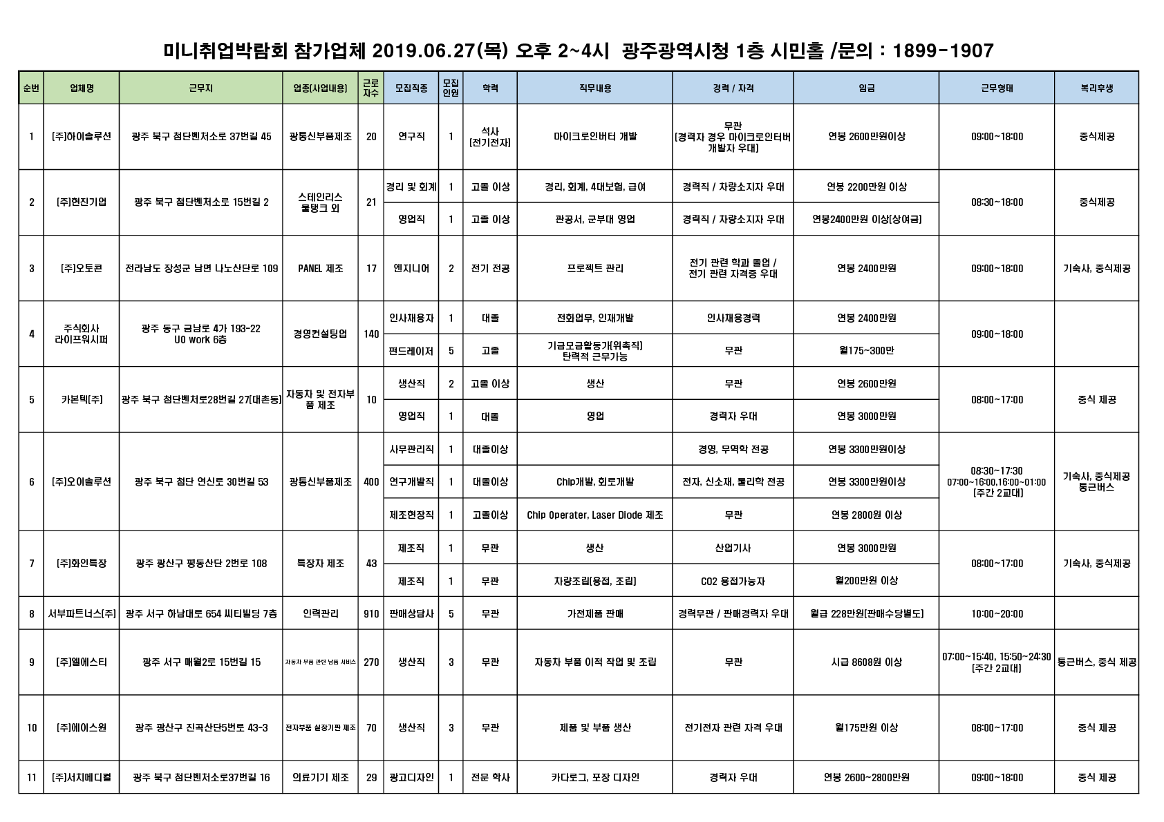| 광주, 김대중컨벤션센터 중소기업위크 미니취업박람회 6.4(화) (0) | 2019.05.27 |
